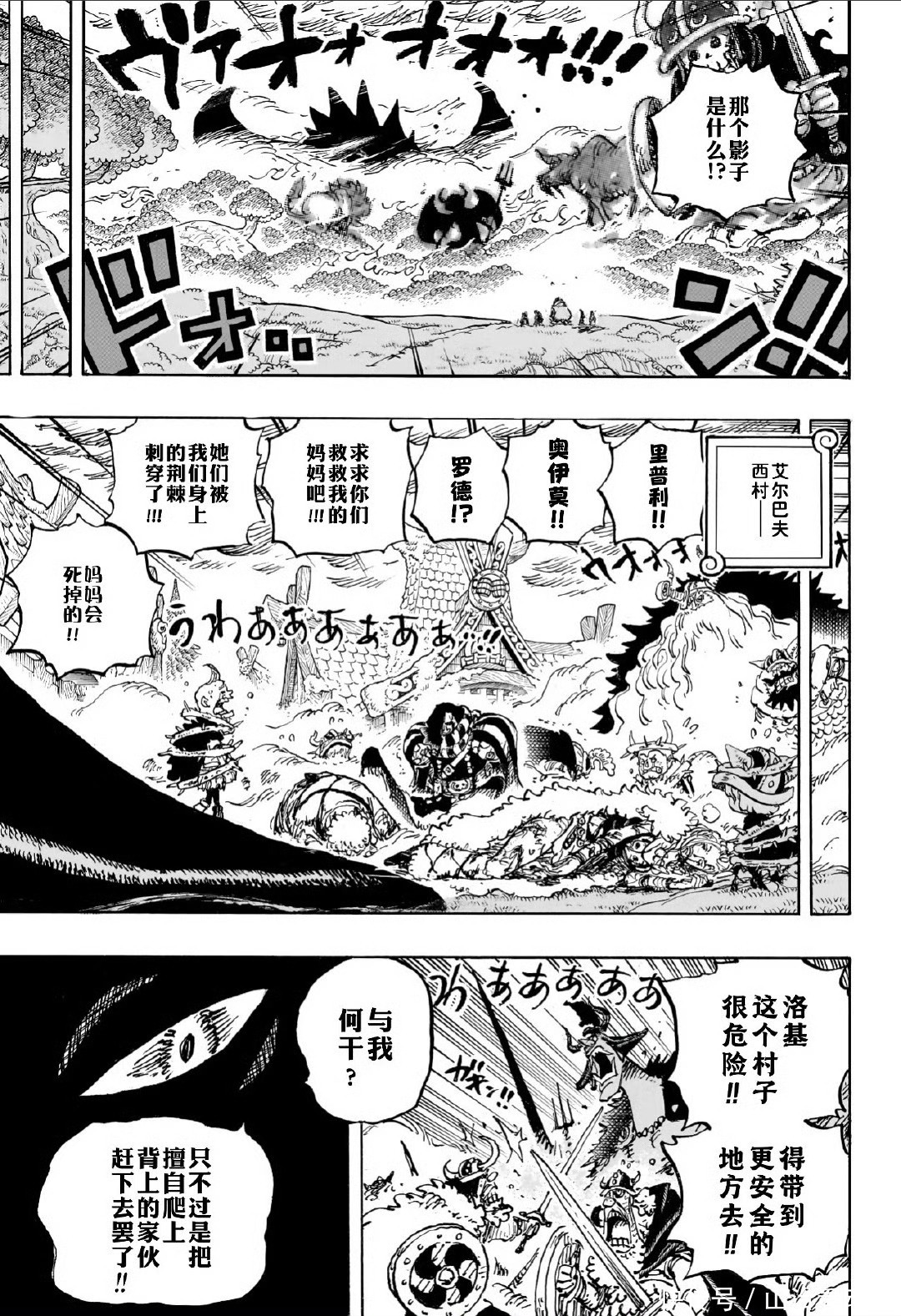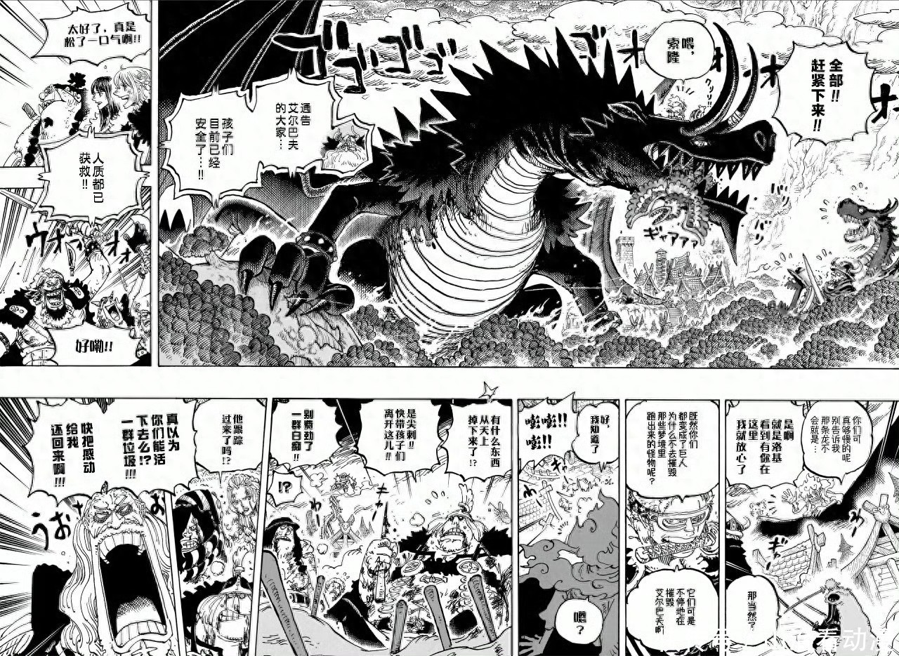 索隆还在西村,他正在守护孩子,西村还是很危险的,恶魔傀儡还在这里。梦魇怪物已经被洛基王子摧毁,恶魔傀儡又站起来了,索隆只能继续对付恶魔傀儡,东利和布洛基继续带领恶魔傀儡杀过来。
